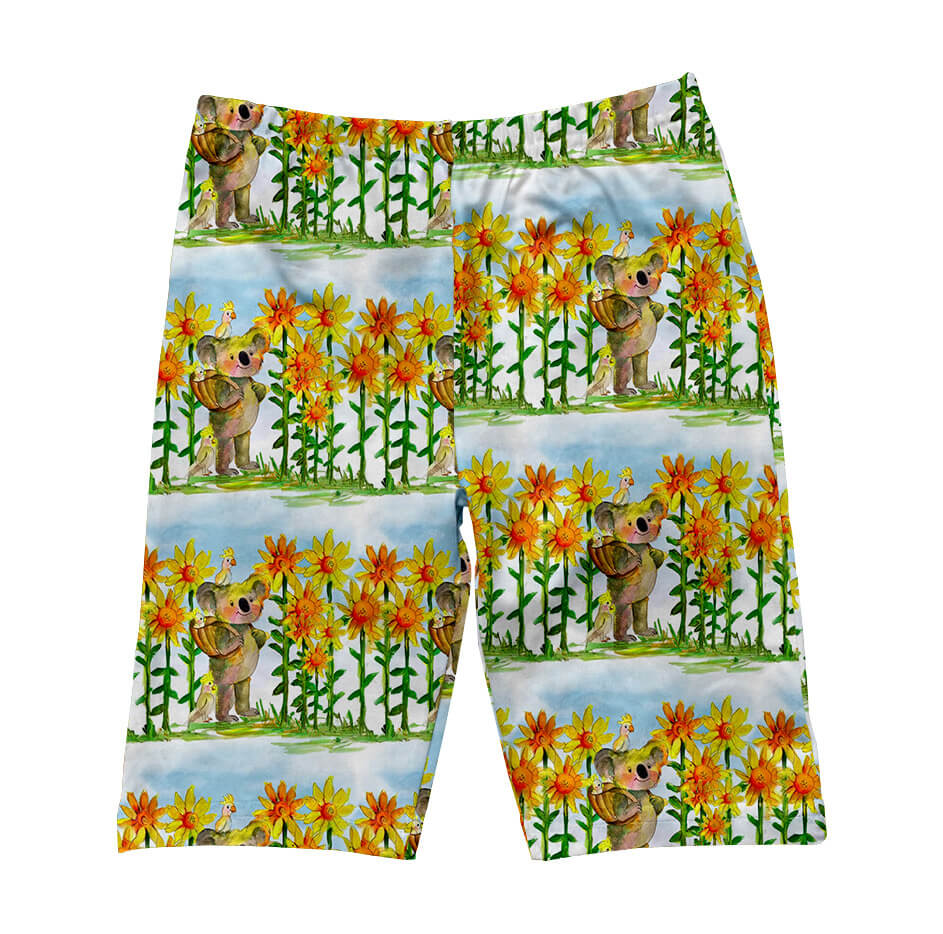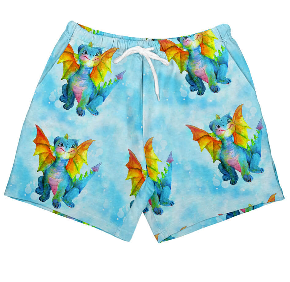 Man Wearing Neon Fish Men's Boardshorts While Poolside With Boy