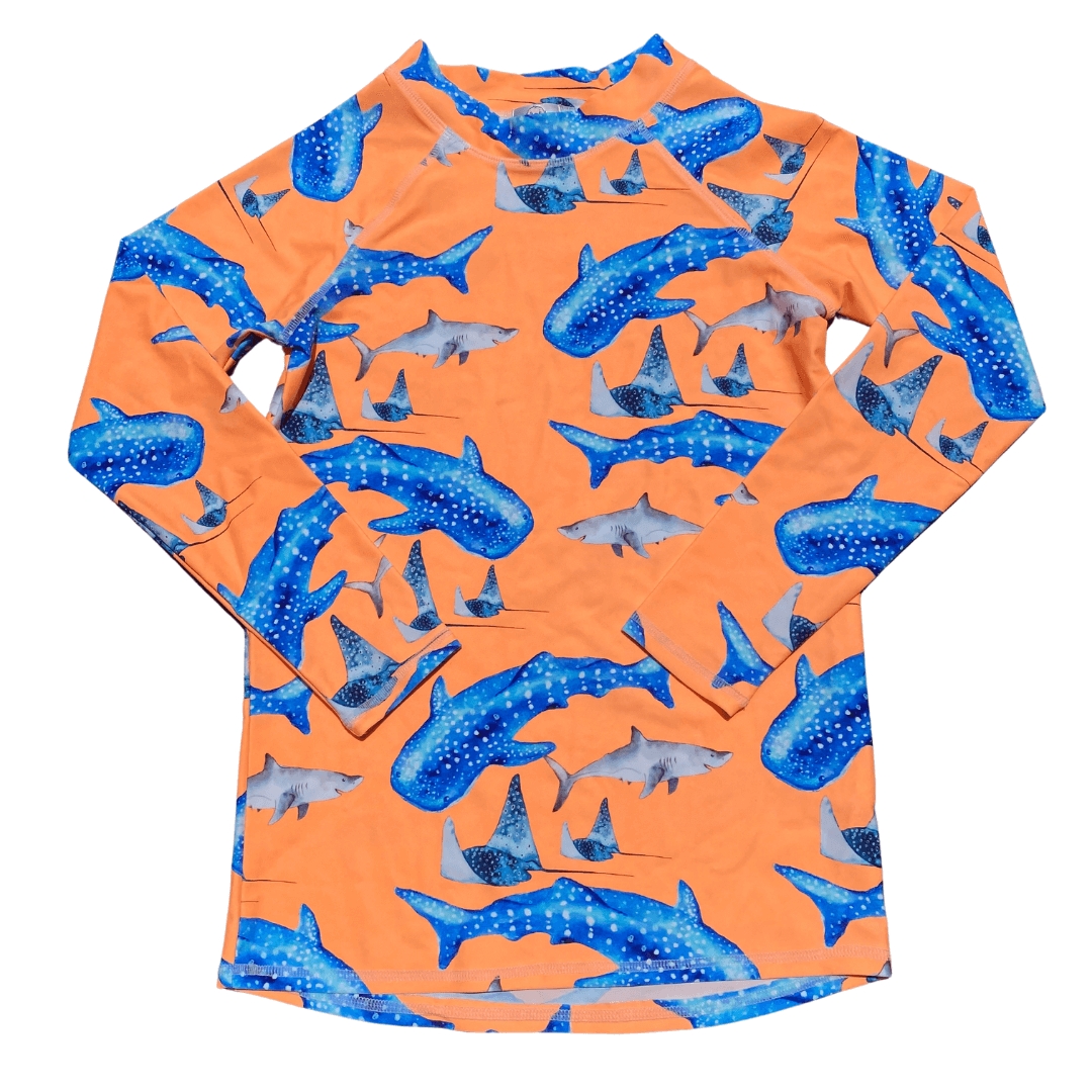PREORDER Fluro Orange Sharks Kids' Rash Top (Ships w/c 10th Nov)